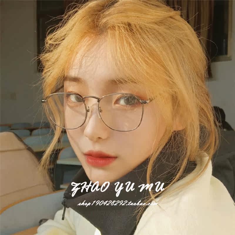 Ins wind net red gold large frame plain glasses women's short-sighted Korean version tide round face glasses frame big face thin male