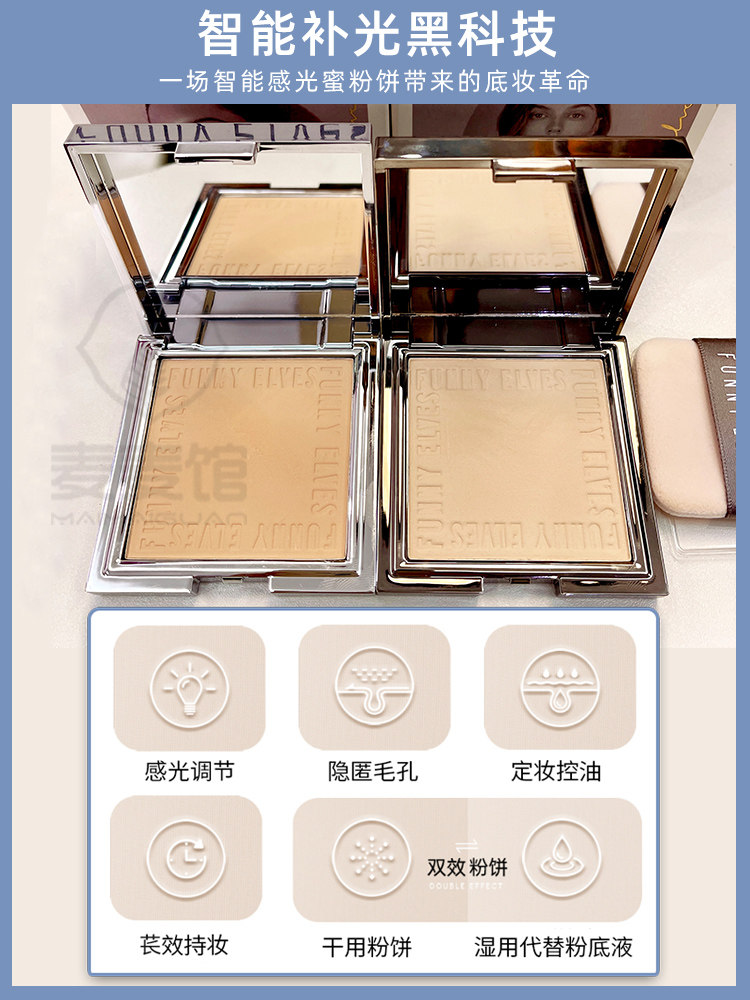 Funny Elves soft-scorched honey powder cake oil-controlled makeup concealer long-lasting natural color fe photosensitive powder powder loose powder