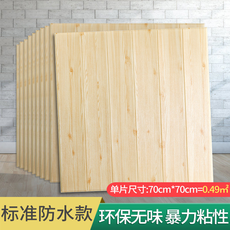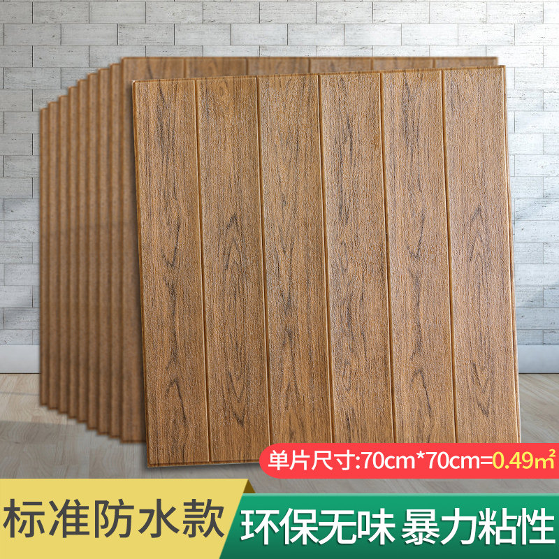 Wood Grain Wallpaper Self-Adhesive Cozy Bedroom Soft Bag Foam Wallpaper 3d Solid Wall Applid Background Wall Decals Stickers