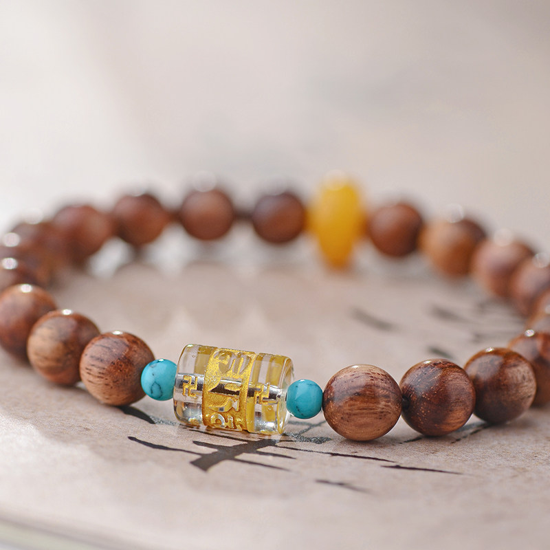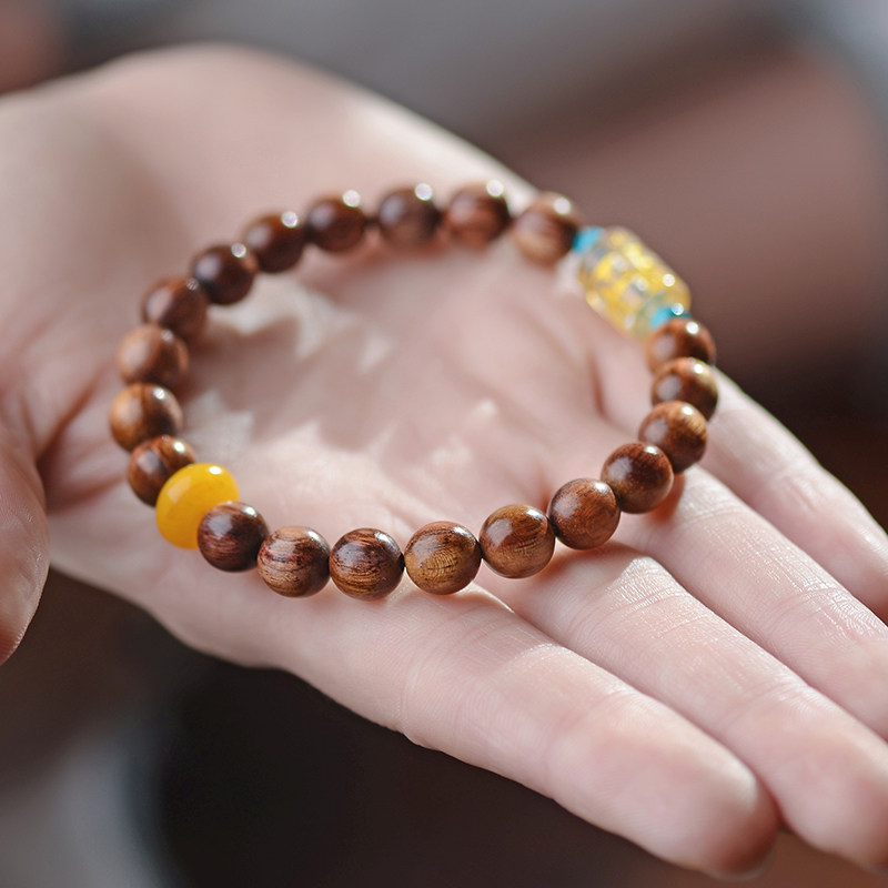 Landscape pattern strong fluorescent sea yellow old material bracelet Hainan Huanghuali Buddha bead hand 8mm single circle Jingulou