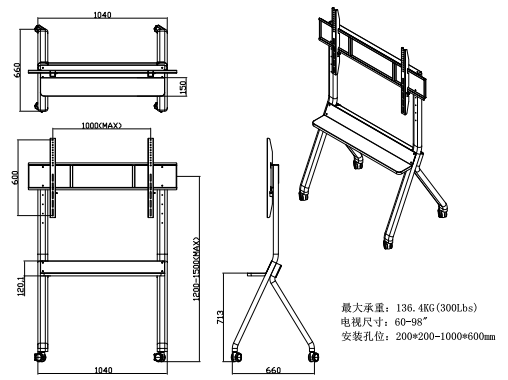 TV smart screen floor mobile stand 65 inches 86 inches suitable for Huawei IdeaHub 360-degree rotation