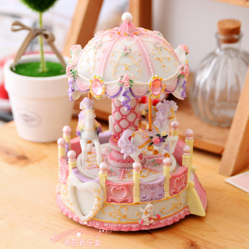 Sky City Resin Luminous Carousel Mechanical Music Box Music Box Creative girl children's birthday gift