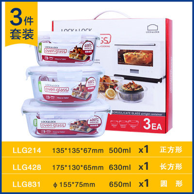 Lock lock glass preservation box Microwave oven lunch box Heat-resistant glass lunch box 3-piece set LLG428S001