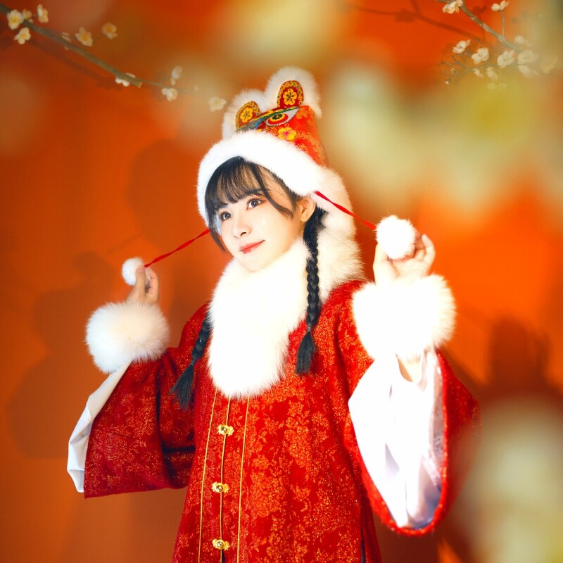 Warm hand cylinder red all-code imitation fur-side red anchow fabric imitation fur side red cloud brocade fabric upscale new rabbit fur red brocade small phoenix fabric upscale new real rabbit fur red cloud brocade fabric upscale new