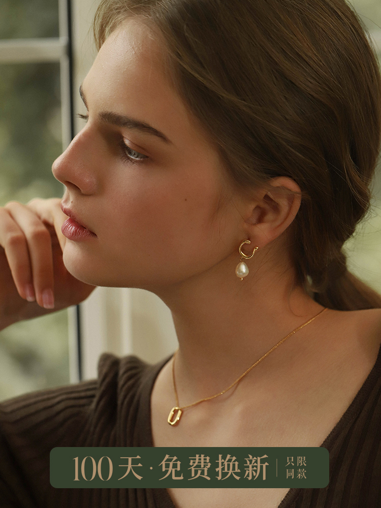 Pearl pendant retro earrings women's 2022 new trendy temperament earrings round face thin net red high-end sense earrings