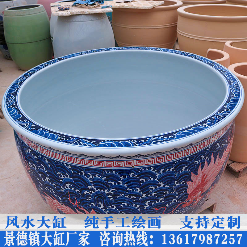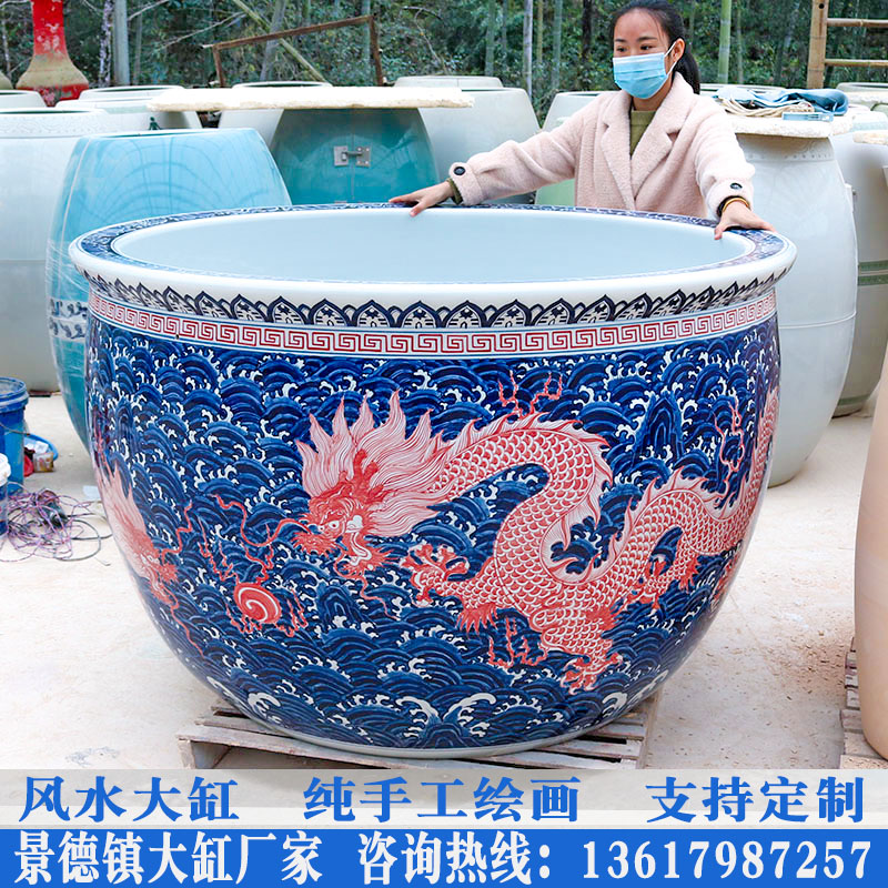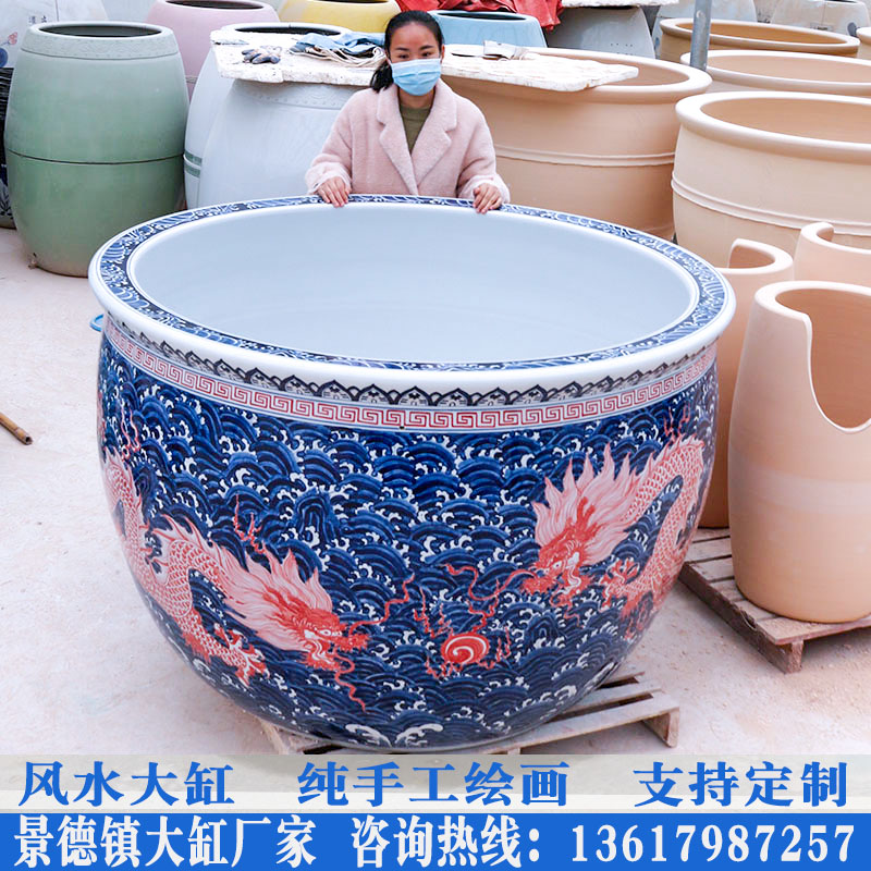 Ceramic Large-cylinder Jingdezhen fish tank water cylinder fish farming courtyard special large lotus cylinder outdoor town house Merchants-in-cylinder swing piece