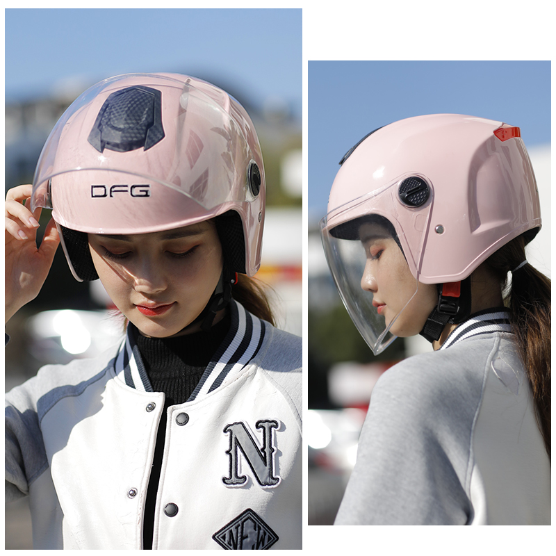 DFG battery electric car helmet Men and women winter full helmet warm half helmet gray cute four seasons universal helmet
