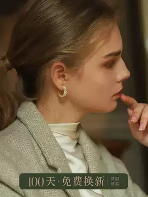 Imitation Pearl double c earring circle French design sense ear needle advanced sense niche temperament simple cold wind ear ring