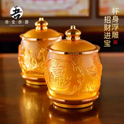 Glass lotus lamp holder single branch (Amber) colored glazed lotus lamp holder single branch (ancient sink) glass lamp holder pair (Amber) high glazed lamp holder pair (ancient sink) high eight auspicious water cup small