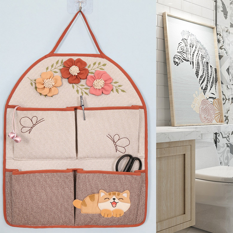 Mobile phone cashier bag hanging bag wall-mounted debris bag wall hanging cloth art large capacity South Korea adorable dormitory bedroom bed