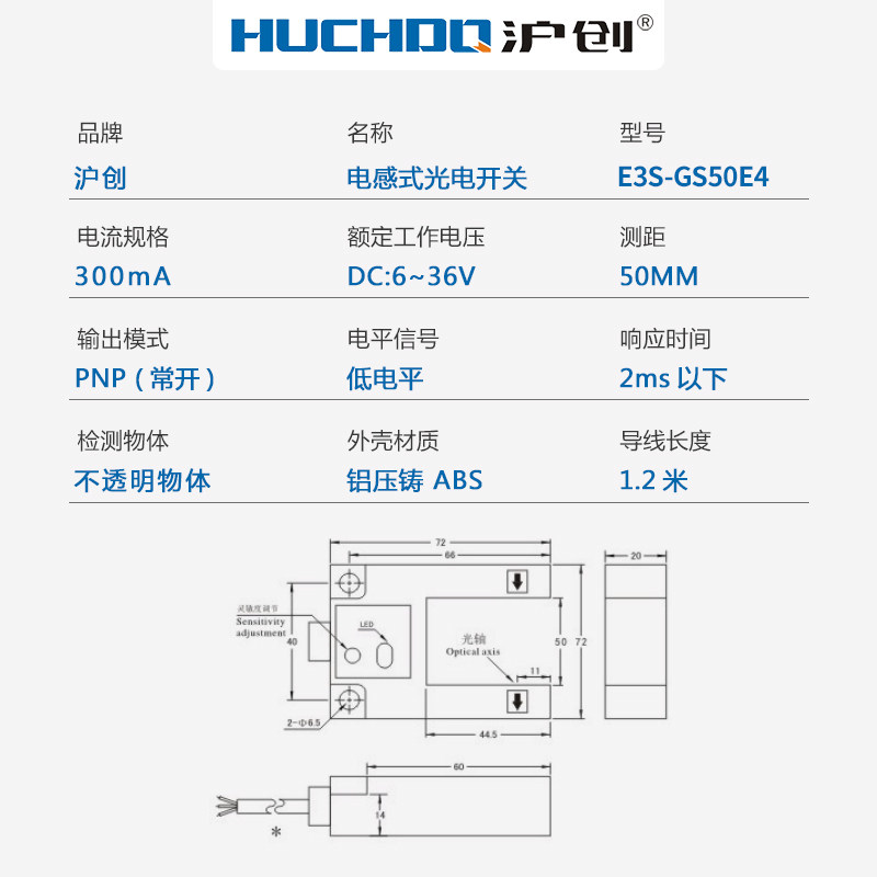 E3S-GS50E4 (3-wire DC NPN normally open) E3S-GS50E2 (3-wire DC NPN normally closed) E3S-GS50P4 (3-wire DC PNP