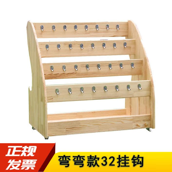 Kindergarten Hair Towel Rack 32 Hooks Children Special Mobile Wood Containing Layer Rack Zhangzi Pine Solid Wood Wool Towel Rack