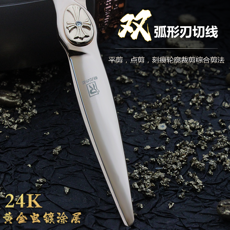 Taiwan original Costume Research Edge Social Science cut dry and dry wet universal integrated flat cut 24K gold coated beauty hair gold scissors