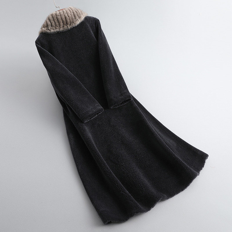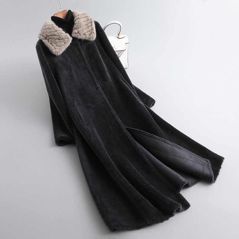 Sheep shearing coat women's 2021 new winter mink woven wool collar lamb fur grain fur all-in-one coat