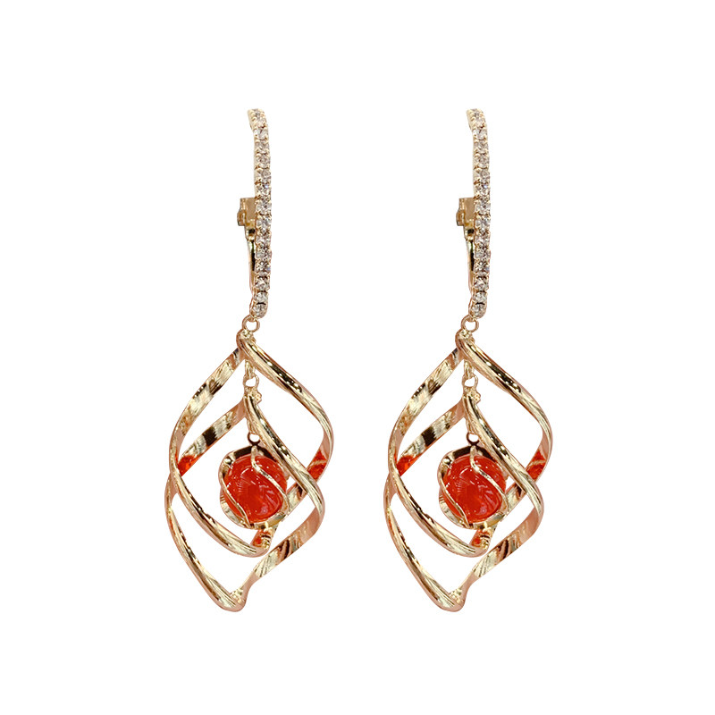 RED FORWARDING CAT EYE STONE EARRINGS