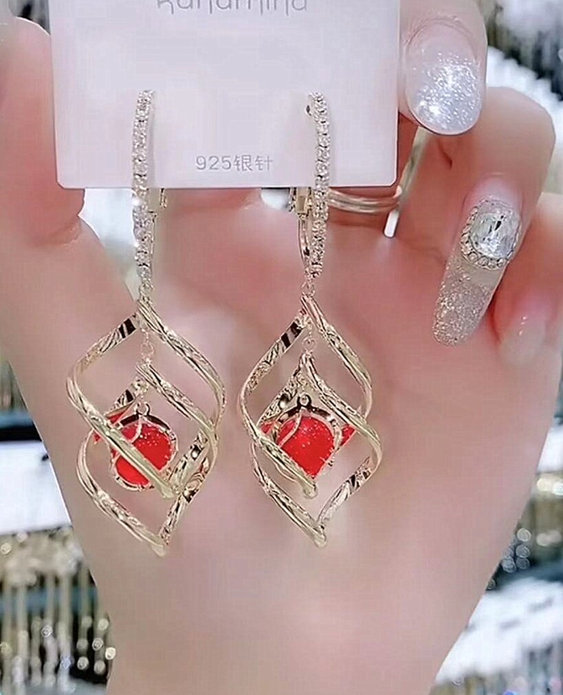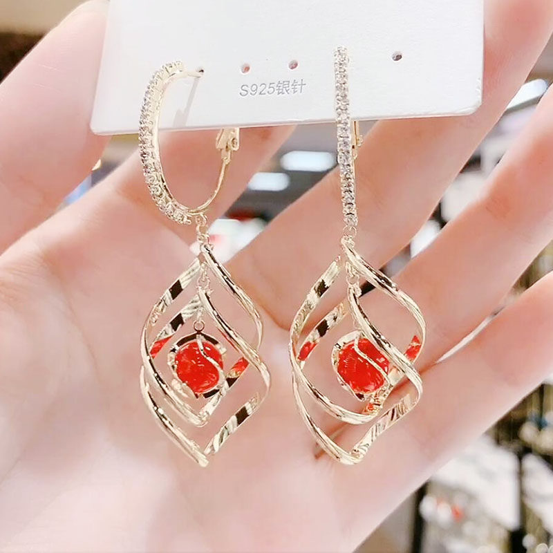 2020 new Korean temperament geometric inlaid drill transfer earbuds net red minimalist earrings for female cat eye stone long version earrings