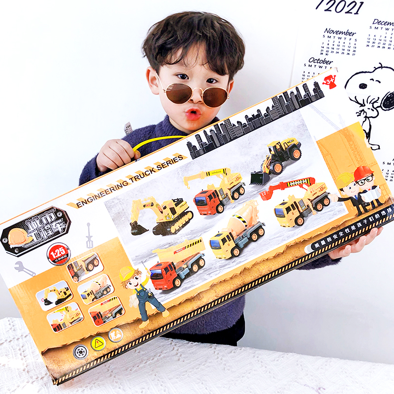 Large engineering vehicle children's toy set simulation excavator bulldozing dump bucket mixing cloud ladder hanging boy car