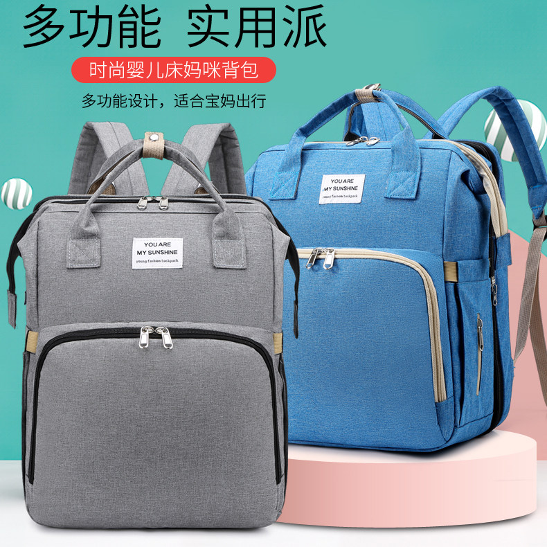 2020 new portable folding crib mommy bag can hang baby carrier customizable mother and baby double shoulder bag multifunction
