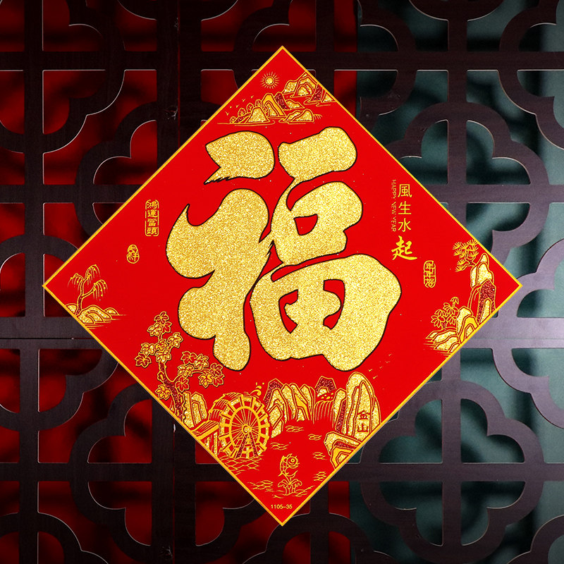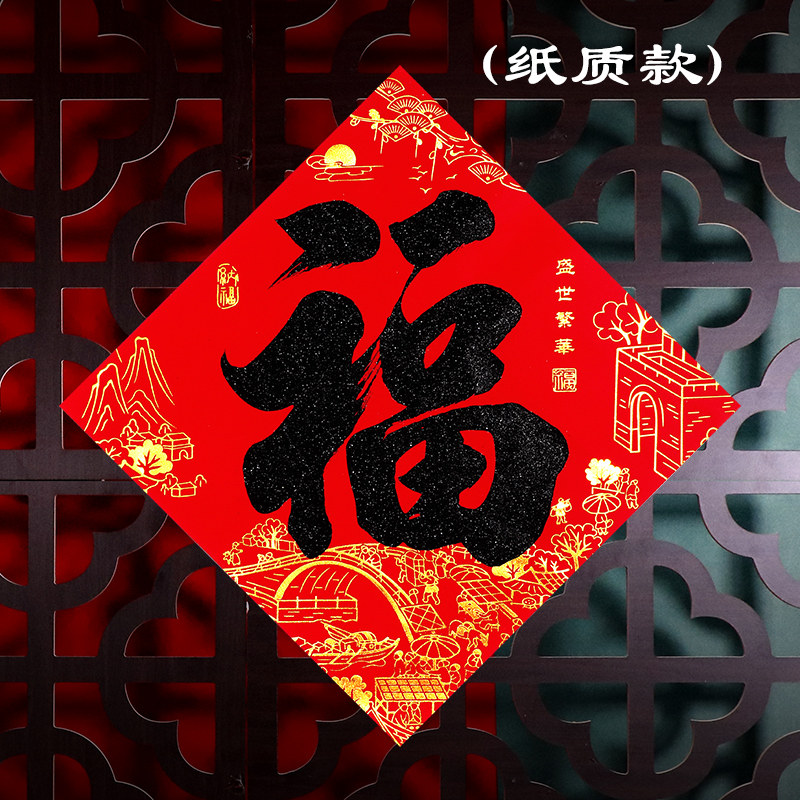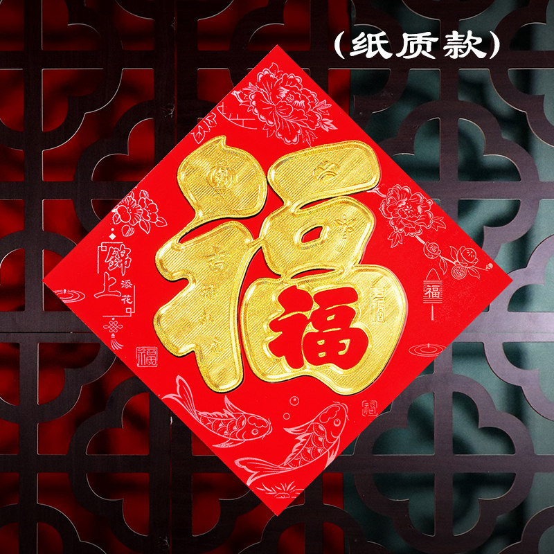 Suede Bleu Black Character Fu Character Wall Patch Bronzed Gold Calligraphy Door Stuck Suede Noodle Upscale Spring Festival Home Community Unit Gate For Chinese New Year's Eve