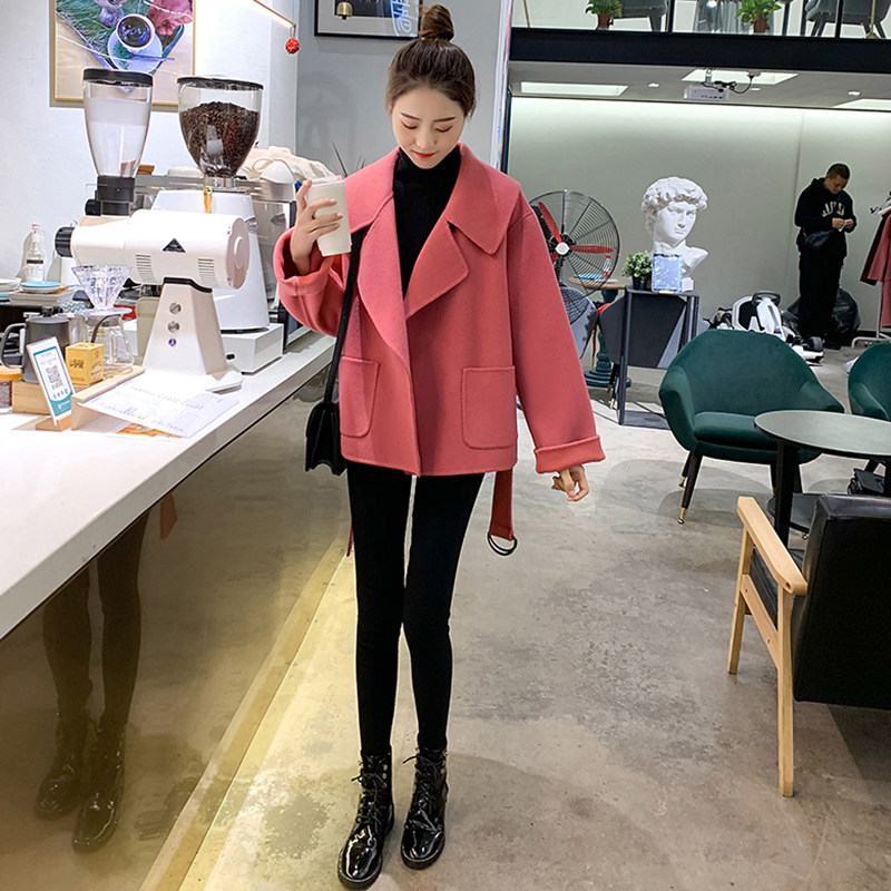 Pink double face cashmere big coat woman short autumn winter retro lace small sub dolls collar thickened fur coat-Taobao