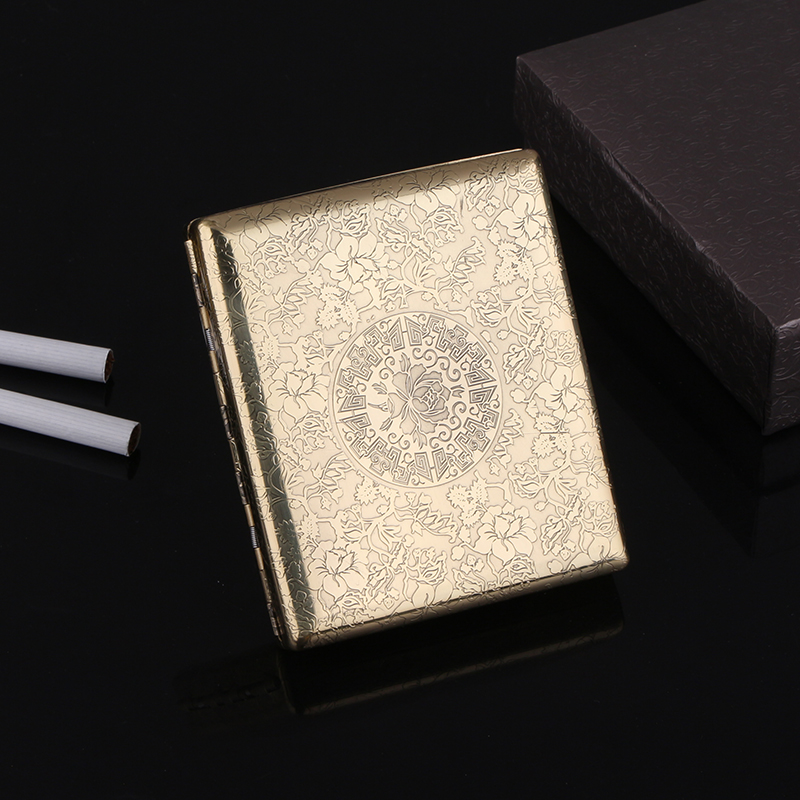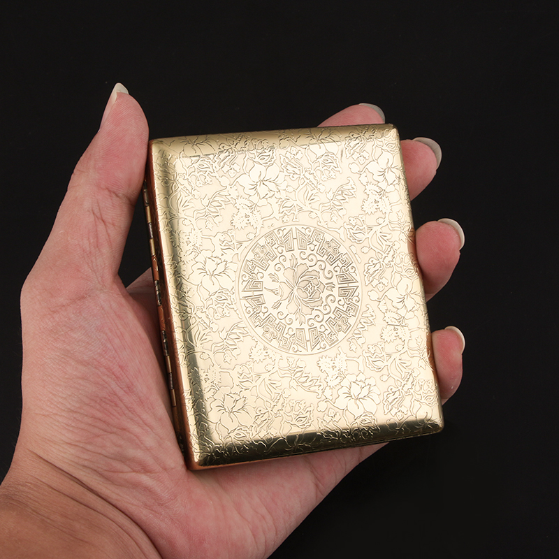 Hong Kong Brass 20 Pack Retro Cigarette Case Portable Moisture-proof Anti-pressure Smoke Clip Metal Personality Flip Cover Cigarette Case