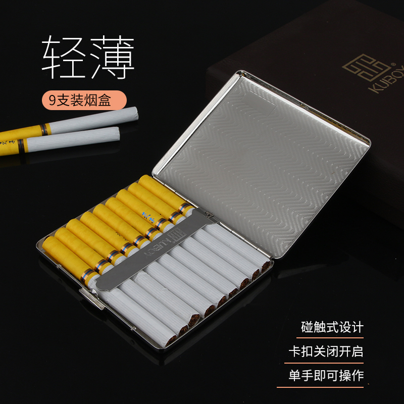 High-grade stainless steel ultra-thin cigarette case 9 sticks simple flip-top portable anti-pressure metal personality cigarette case with you