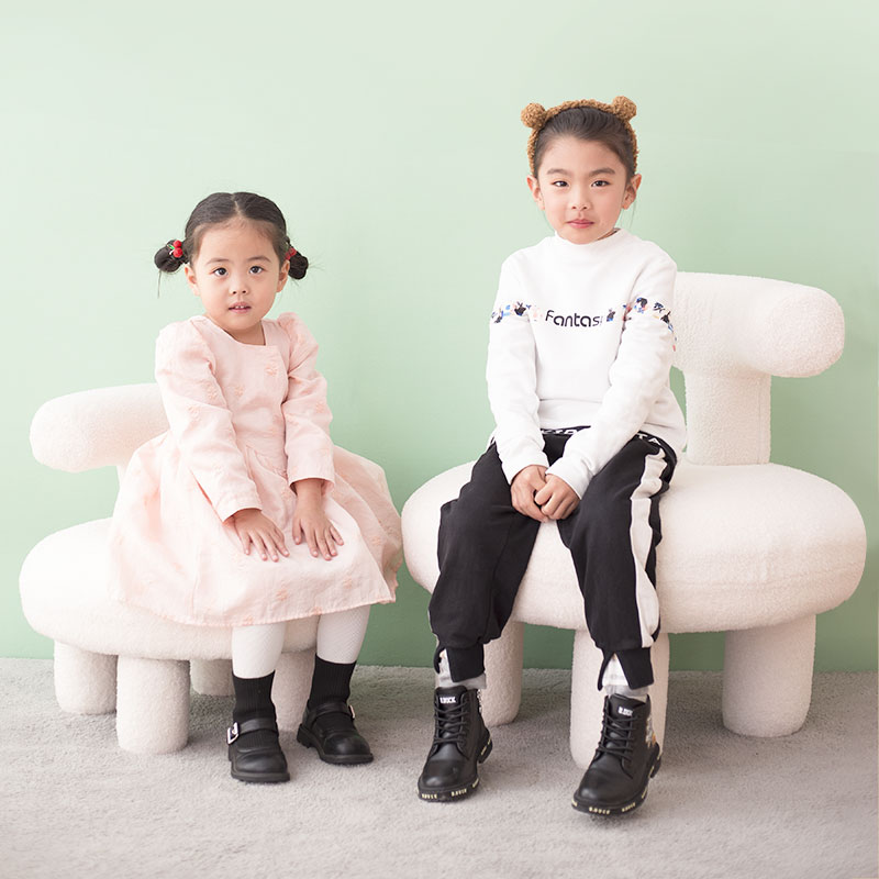 Lamb wool soft bag changing shoes stool light luxury sofa doll pier solid wood creative children's heart cartoon free installation small chair
