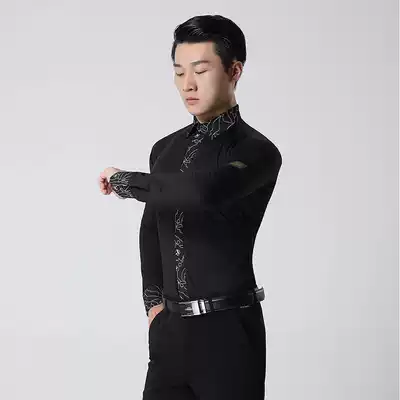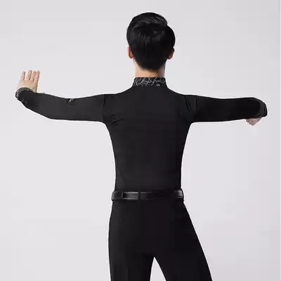 Danbaolo modern dance suit Men's long-sleeved dance practice suit National standard dance black social dance top dance costume