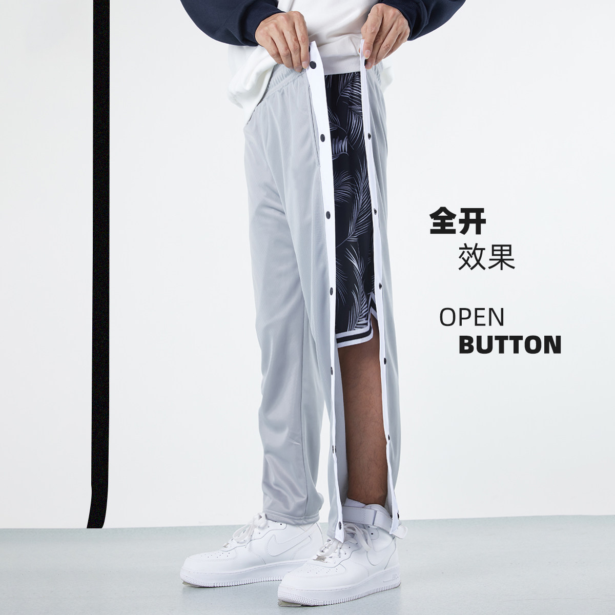 Sport long pants men's spring and summer Cosby Irving basketball training pants full-open row of buttoned pants loose straight cylinder side opening button pants