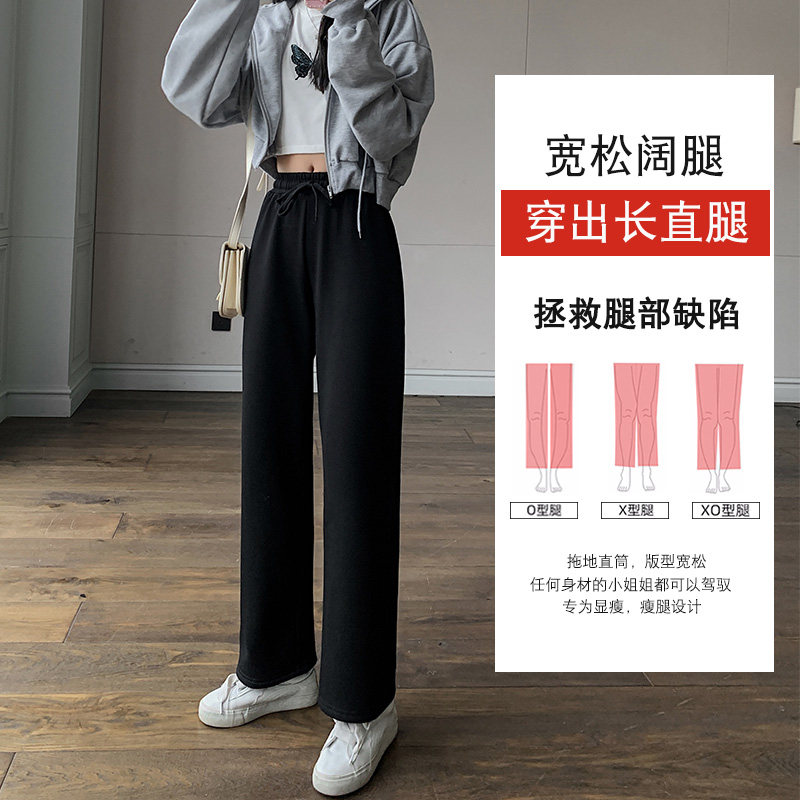 Gray wide leg pants women loose 2021 new spring and autumn high waist hanging straight tube thin wild casual sports pants