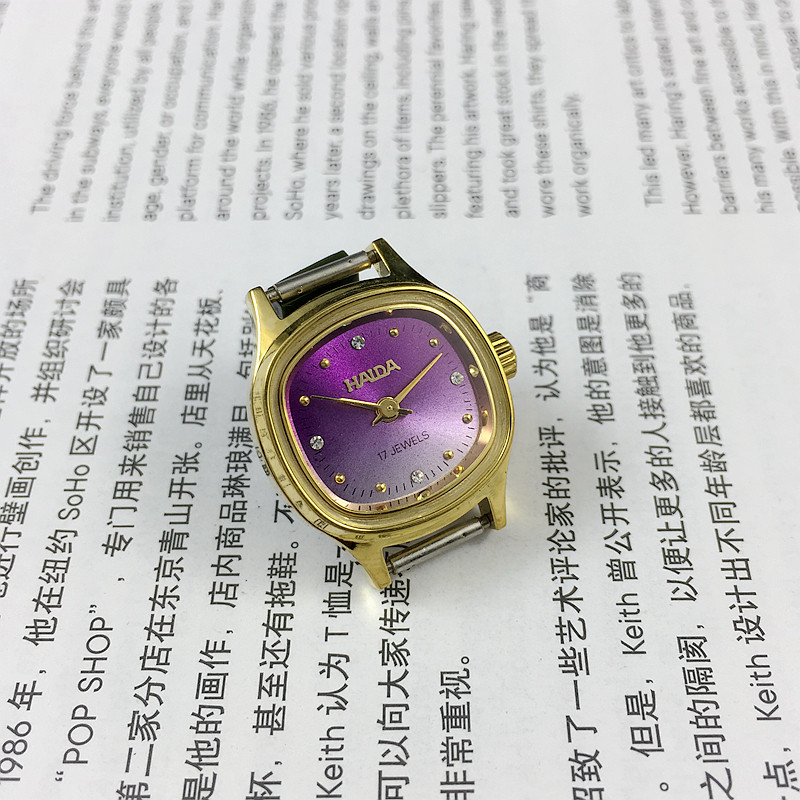 Original stock Hyda square yellow shell of the purple surface mechanical watch 23 mm diameter send strap 1