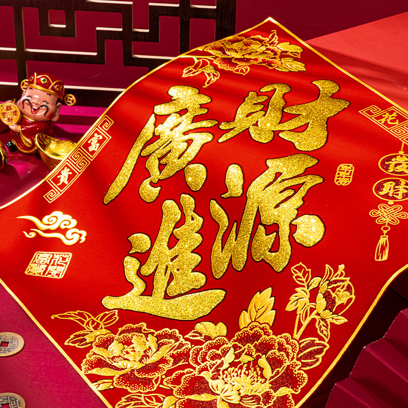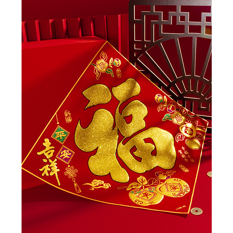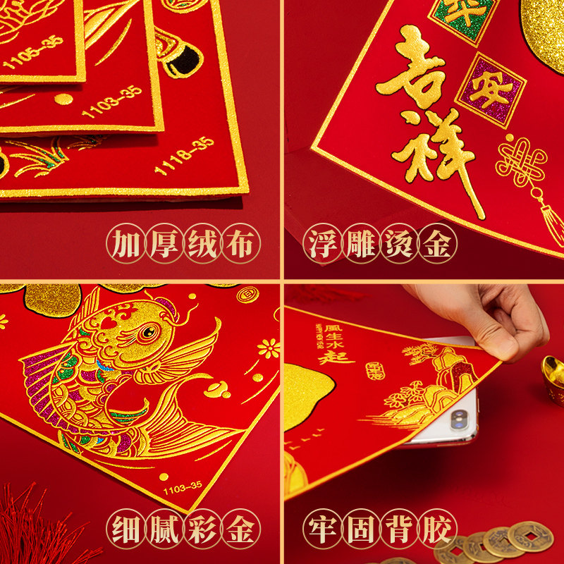 New Year blessing sticker Year of the Ox Decorative door sticker Bucket Square New Year Painting Spring Festival New Year Moving housewarming Flannel Blessing door panel