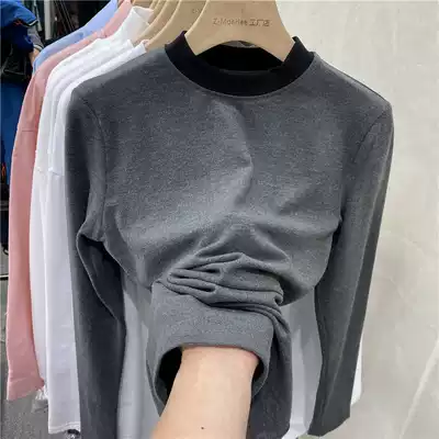 Color-matching round neck brushed long-sleeved T-shirt women's 2021 spring and autumn new inner tie bottoming shirt slim stretch all-match top