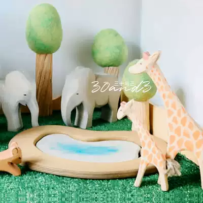 Handmade wooden animals Children's scene construction toys Lake glacier meadow River natural scenery ornaments ins
