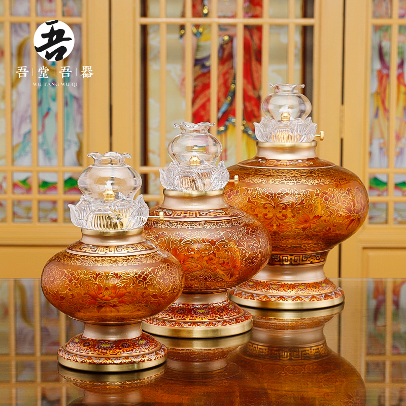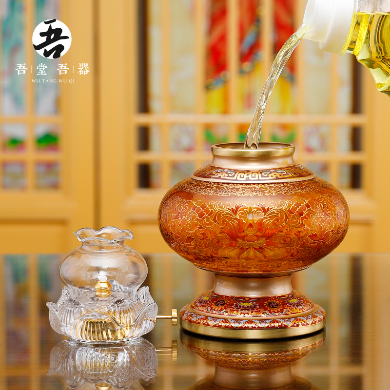 Brass oil lamp lamp for Buddha lamp glass liquid ghee lamp household windproof glass ever-bright lamp Buddha for lamp Su