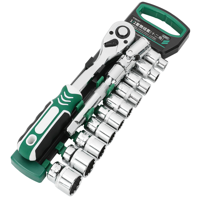 Green (rotary handle)1 41 4-inch socket wrench 12-piece set (send gloves) Green upgrade curved handle 72 teeth 1 41 4-inch socket wrench 12-piece set (send gloves)