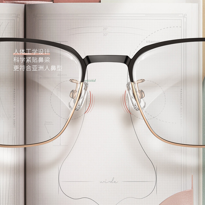 Paramount glasses frame men's trendy square Yang Yang can be matched with myopia big face pure titanium light radiation anti-blue light glasses eye protection