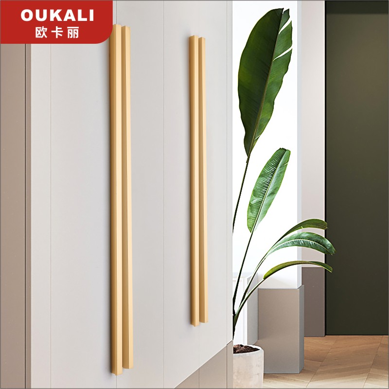 Nordic cupboard drawers Long handle light and luxurious modern minimalist Fancy Wire Drawing Golden Cabinet Wardrobe Doorknob Bronze-Taobao