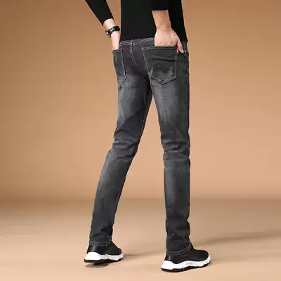 Jeans men autumn and winter plus velvet thickened slim feet trend Korean straight trousers autumn and winter men's pants