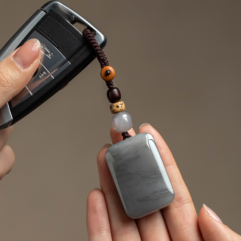 Pufang collection grade Hetian Yu Ping An Incidentless Car Key Buckle Smoke Purple Jade Pendant High-grade Jade Pendant Men and Women