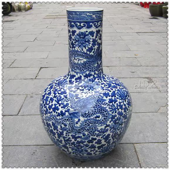 Supervalues Recommended Jingdezhen Ceramic ware Handpainted imitation ancient green flower Porcelain Sky Ball Plum Bottle table Vase Hem special price