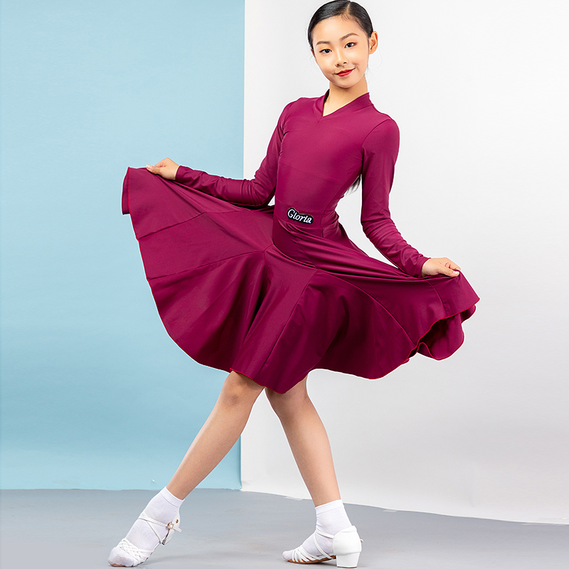 Gloria female children's Latin dance clothes European standard custom V-neck long-sleeved one-piece competition clothes performance clothes regulations