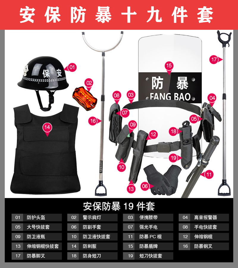 Personal anti-riot 10-piece set Personal anti-riot 14-piece set of security anti-riot 13-piece set of security anti-riot 17-piece set of security anti-riot 19-piece set of anti-riot helmet
