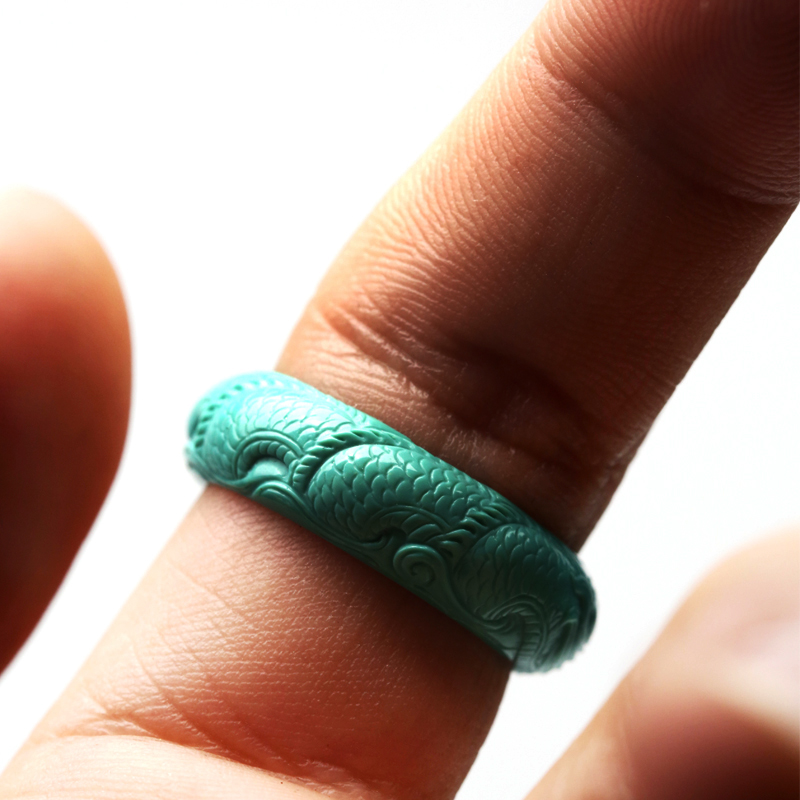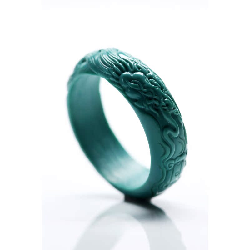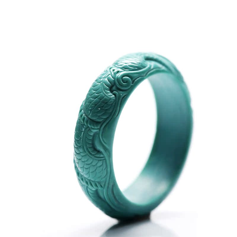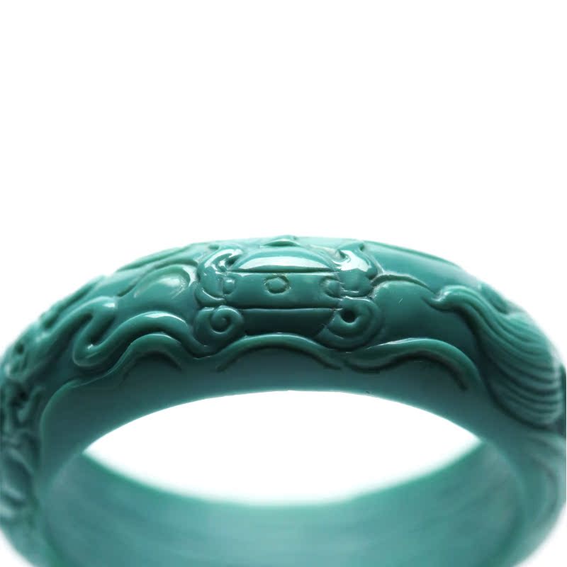 The first high-grade porcelain raw ore jade blue-green pine integral zodiac dragon ring exquisite carving couple men's wrench ring