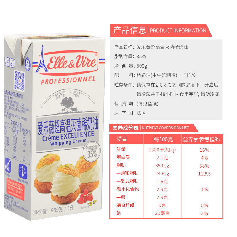 French Iron Tower Light Milk Oil Animal Lean Cream White Tower Cream Baking Raw Cake Framed 1L* 12 Box