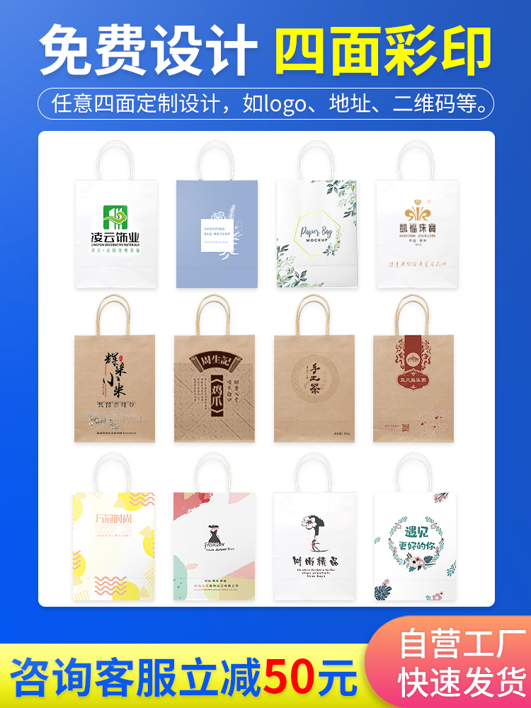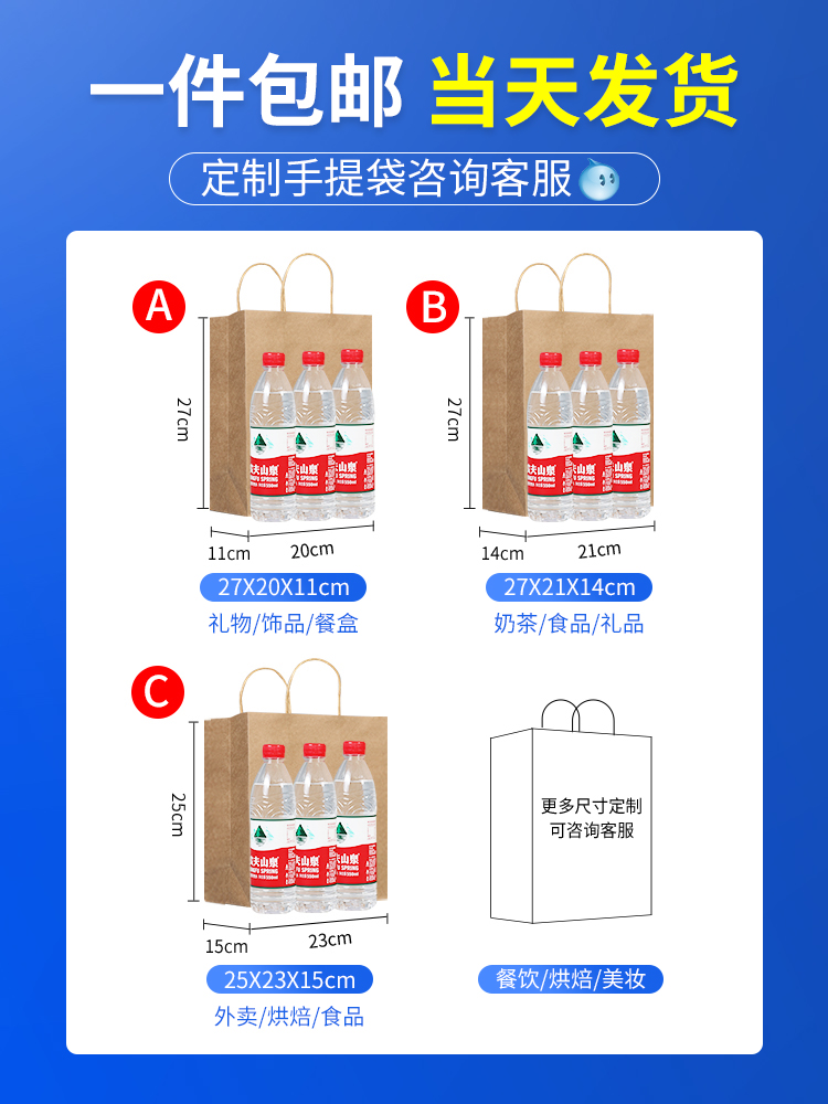 Kraft Paper Bag Custom Handbag Takeaway Bag Takeaway Bag Milk Tea Shop Packaging Gift Bag Gift Bag Print Logo