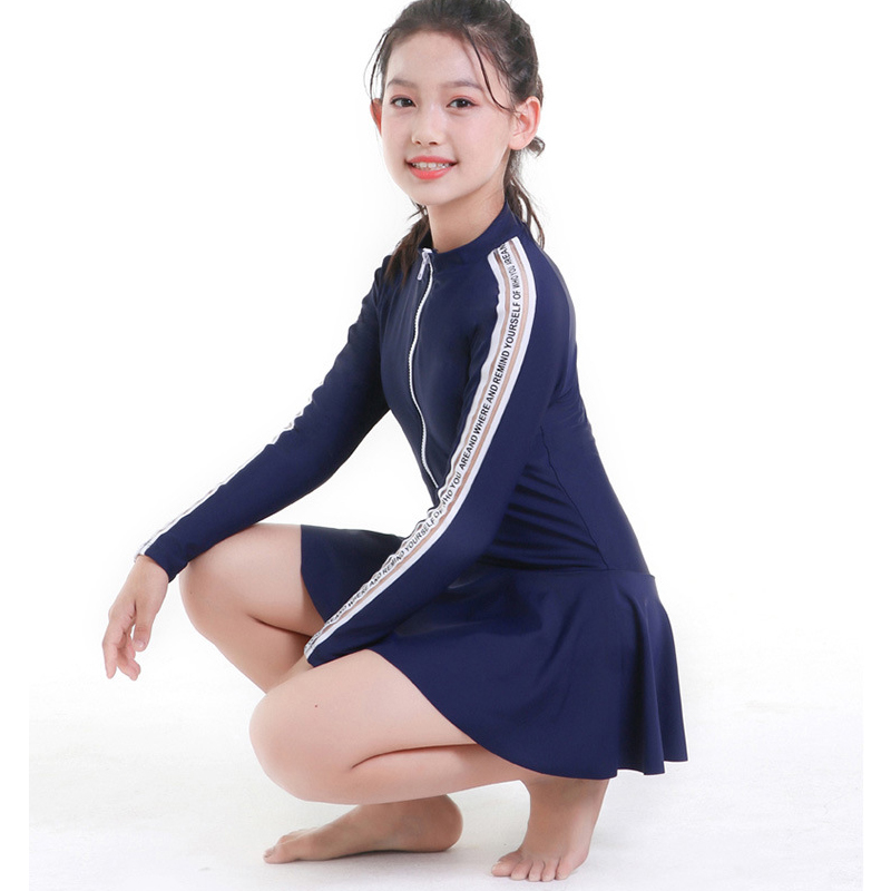 New Korean Academy students 12-15 years old sunscreen long sleeve skirt style one-piece swimsuit girl swimsuit middle child