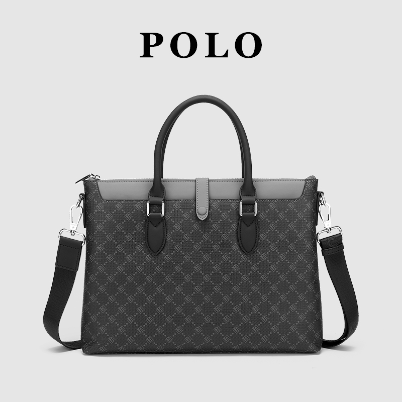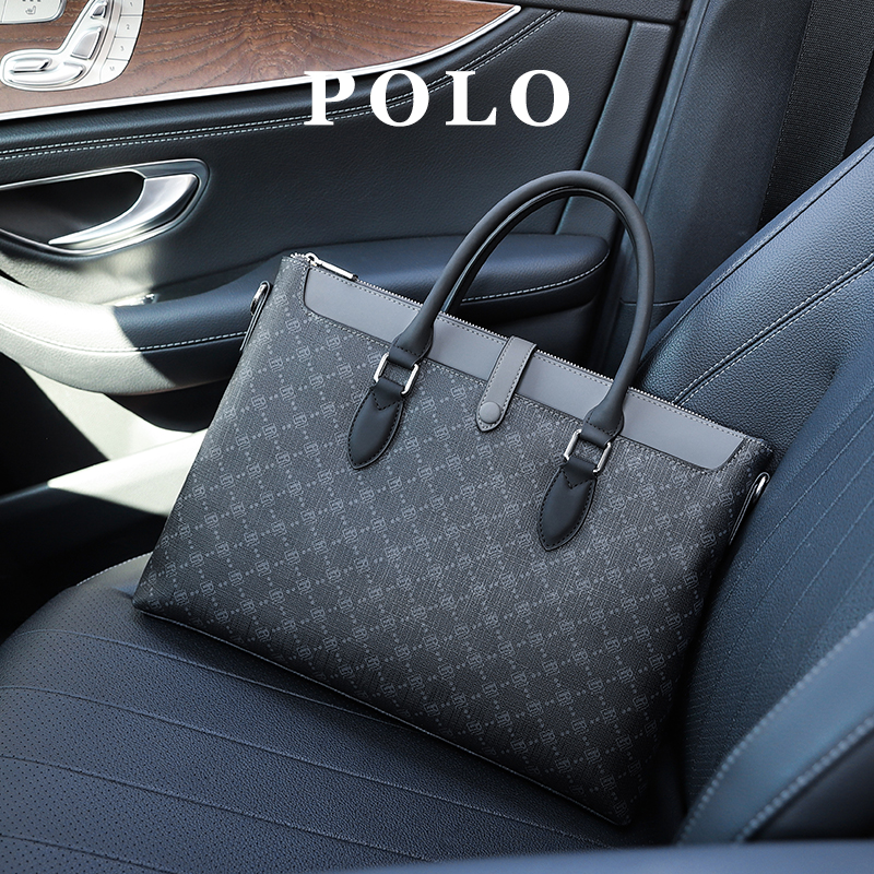 Polo handbag men's business casual men's briefcase PVC new computer bag fashion single shoulder sloped satchel bag-Taobao