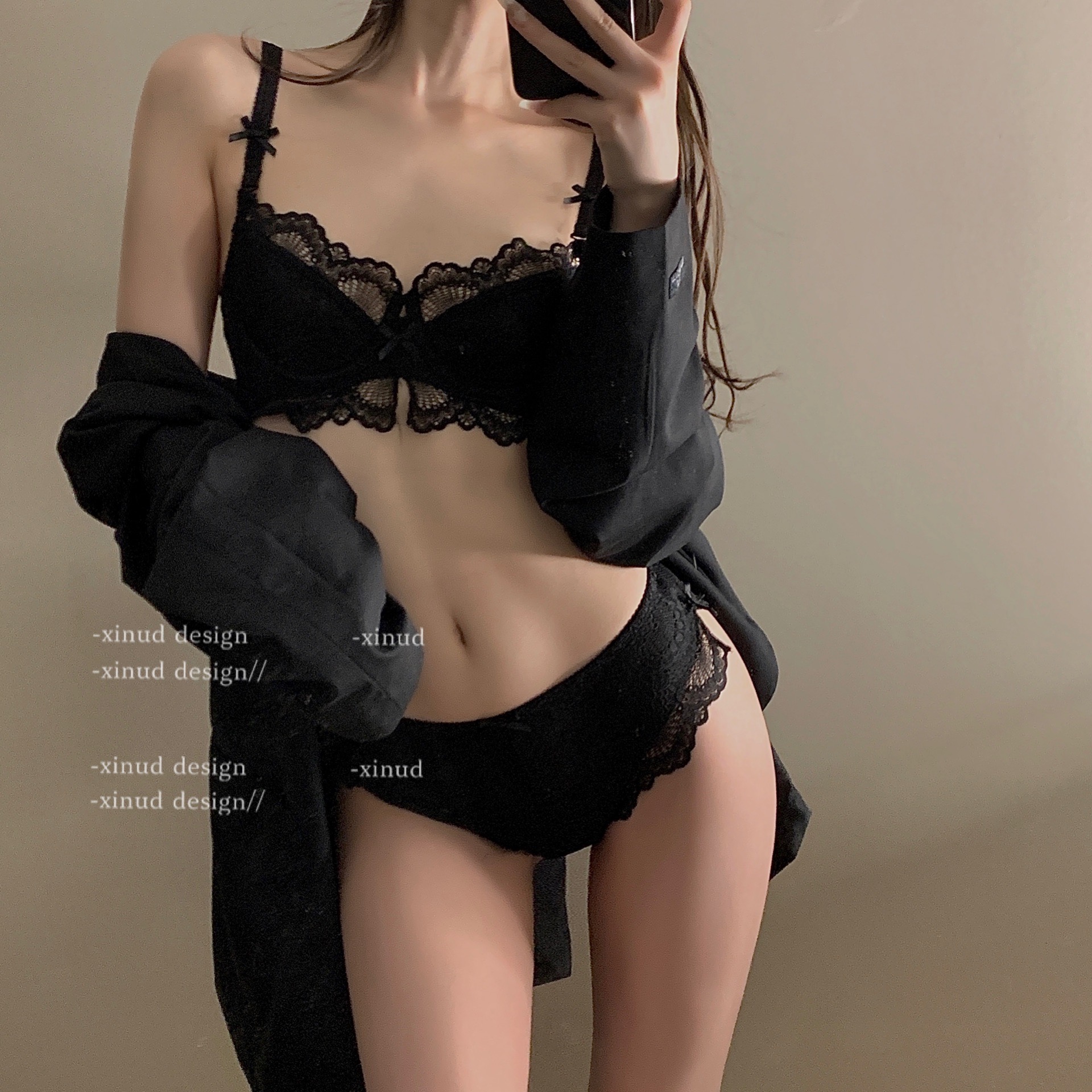 "LA" Limited Season Rose * Lace Sexy Bow Tie Underwear Woman Thin PURE COLOR BRA STYLE BRA SUIT