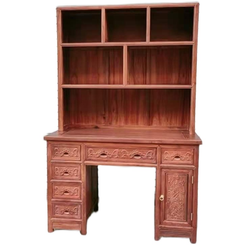 Myanmar flower pear desk bookcase integrates simple desk student desk red wood furniture big fruit purple sandalwood